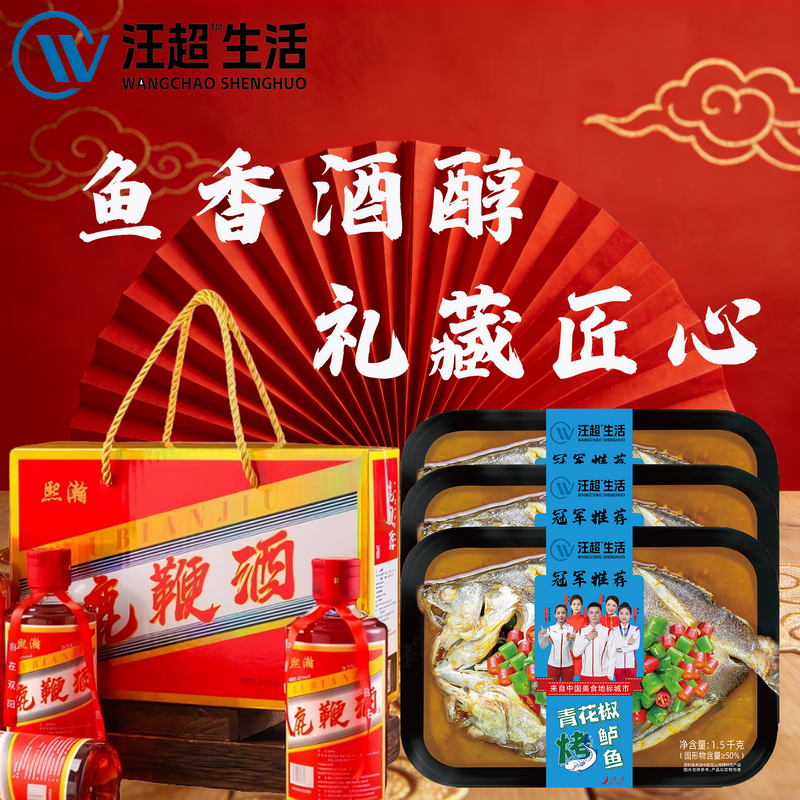 3条汪超烤鲈鱼+3瓶鹿宝酒